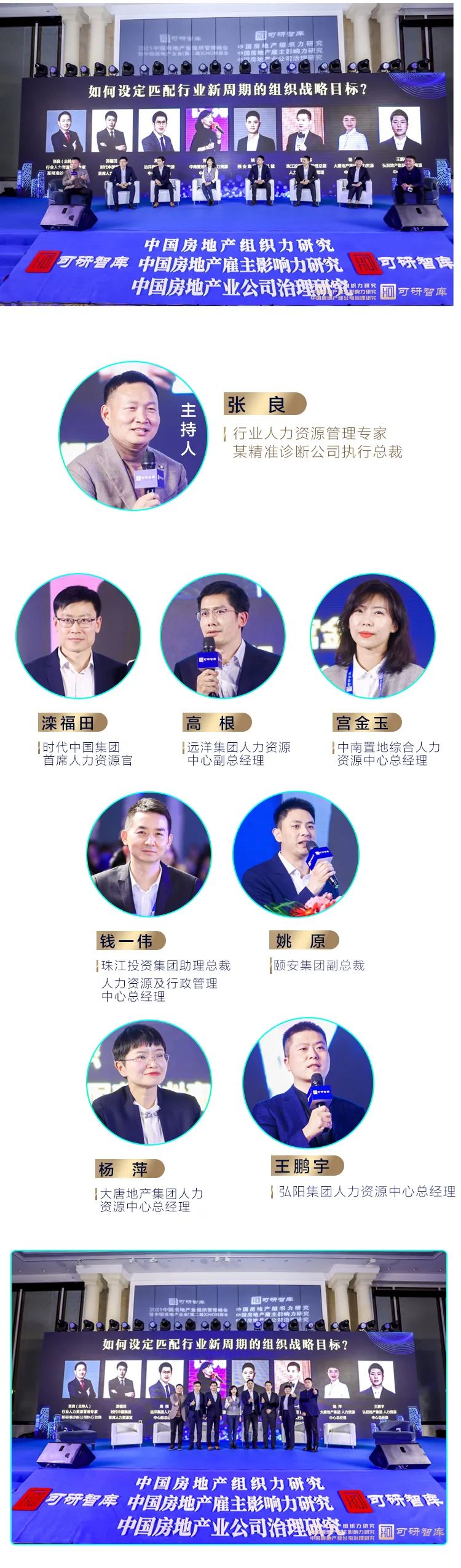研究成果发布后,在行业人力资源管理专家、某精准诊断公司执行总裁张良主持下,时代中国集团首席人力资源官滦福田、远洋集团人力资源中心副总经理高根、中南置地综合人力资源中心总经理宫金玉、颐安集团副总裁姚原、珠江投资集团助理总裁、人力资源及行政管理中心总经理钱一伟、大唐地产集团人力资源中心总经理杨萍、弘阳集团人力资源中心总经理王鹏宇等受邀嘉宾进行了一场圆桌论坛。
