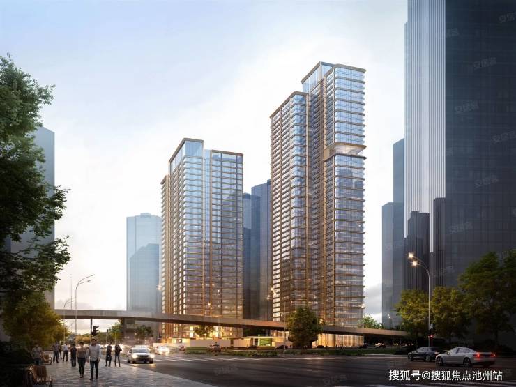 项目以曼哈顿、新加坡、东京、伦敦等国际设计为蓝本,用最小占地释放 最大精神势能,最优的L形塔楼集中占地,释放最大的视野面与首层景观空间,搭配干净利落的立面线条与主立面全幕墙体系。