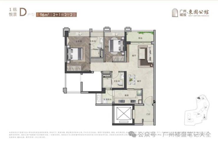 【96 ㎡ 2+1房2厅2卫】