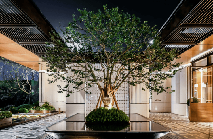 项目选用了约100米精奢酒店式落客礼仪大门,搭配奢石和名贵树种,高级感满满;
