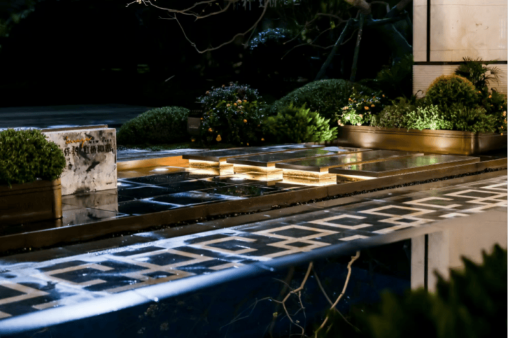 比如上面这个质感拉满的社区大门,奢石应用、水景、海派拼花地铺、弧形角处理,到处满满的细节,直接“碾压”了一把同价位段的竞品,小编瞬间“路转粉”。