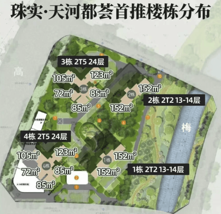 项目容积率仅2.0,算是天河少数的低密刚改产品,预计将推出12栋住宅,户型包含72-85-105-123-152平的三至五房,最新户型的三房说不定300万起就能上车,项目预计4月份正式开放销售中心。