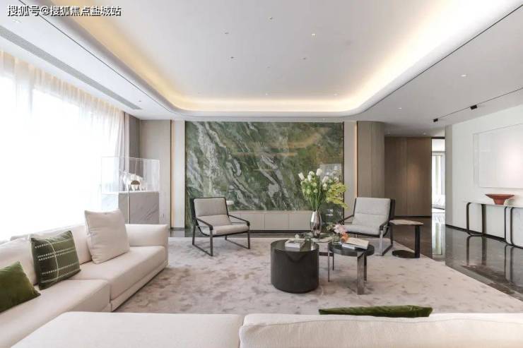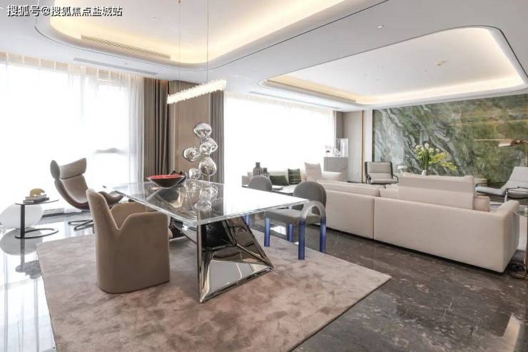 在建筑外部立面,采用整栋楼纯石材干挂与玻璃幕墙结合,庄重的价值感与现代流线融合出经典之美。多玻璃少墙体的设计,也让整个室内空间拥有了360°的全幕环景视野,将窗外的纯正法式两大中央景观公园坐收眼底……一层一户的大胆设计,追求的是居住者的绝对享受,大平层的居住真谛,在丰盛九玺被诠释得淋漓尽致。