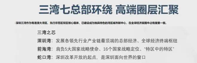 七大全球总部基地,激荡全球资本的湾区超核,由总部经济带串联,吸引大批诸如腾讯、大疆、阿里巴巴等行业龙头企业,以及大批总部企业入驻,未来将吸引260万人才聚集。