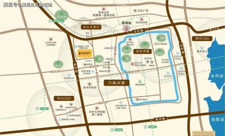 两公里可达石路、天虹商圈,三公里可达观前商圈,三公里半径范围内有第一百货,美罗、大洋百货,五公里可到达狮山CBD。