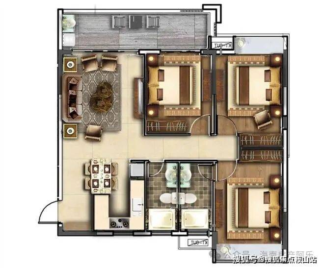 建筑面积约:130-138㎡ 三房两厅二卫(小四房)