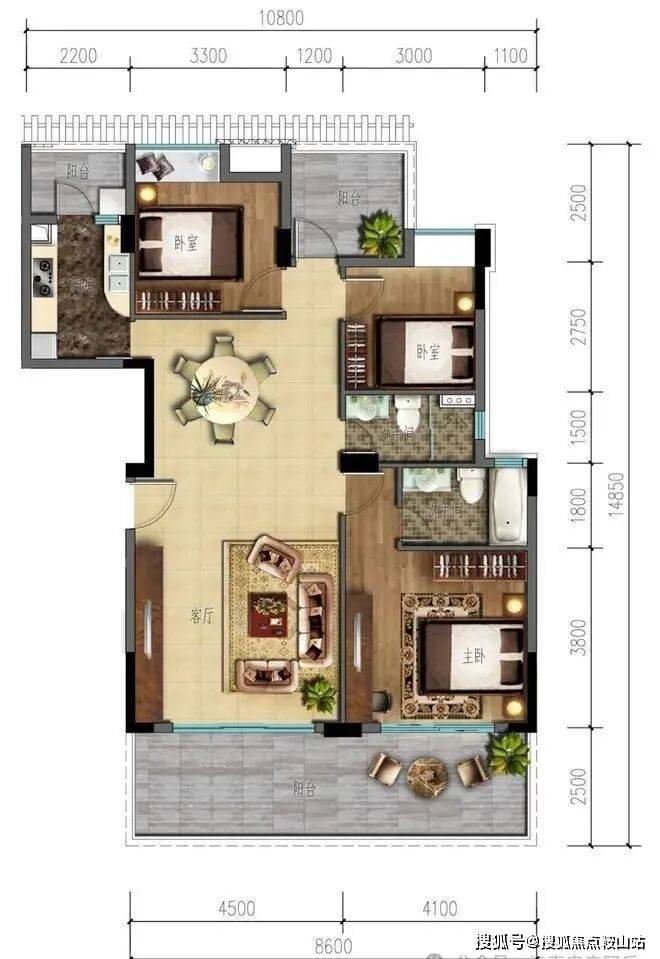 建筑面积100-108㎡ 3房2厅2卫