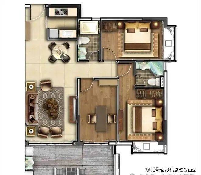 楼王产品:约130-138㎡ 4房2厅2卫(纯板楼/南北通透/两梯两户/温泉入户)