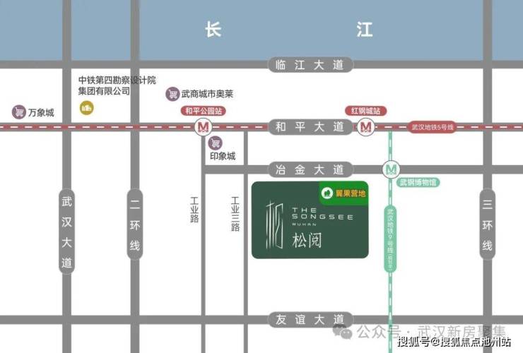双轨:直线距离约300米至9号线(规划中)武钢博物馆站,直线距离约1公里至换乘之王地铁5号线和平公园站