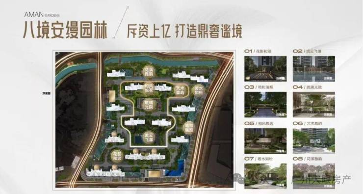 项目绿地面积约1.8万方,综合容积率仅约3.94,远低于荔湾在售项目的容积率。园林打造对标全球知名的安缦系酒店,设置一轴双芯(泳池、会客厅)八境,营造酒店式精致人居环境,定制情景化度假体验,静享自然品质生活。