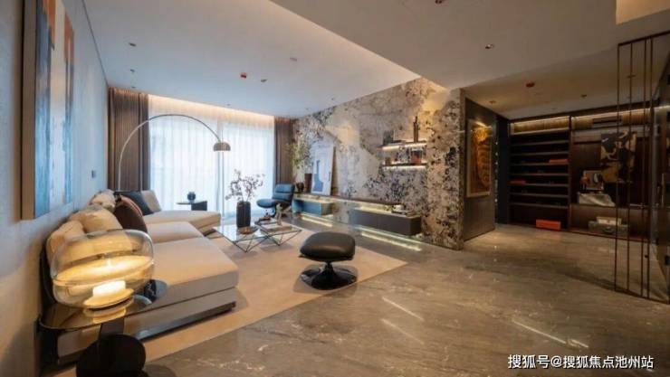 步入公区,由新加坡White Jacket Studio操刀设计的现代奢华空间悄然呈现。挑高大厅配备专属礼宾台,地下落客区赋予归家以仪式感。地面与墙面铺陈“夜里雪”“帕斯高灰”等罕见的珍稀石材,经由人工遴选、精准对纹,在定制灯光的映照下,恍若步入奢侈品牌的私属展厅。