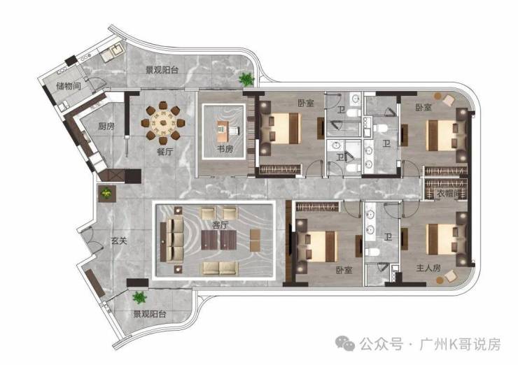 建面约284㎡,四房两厅三卫