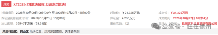 2.1325亿!刚刚,万科又在徐州拿地!楼面价4000/㎡