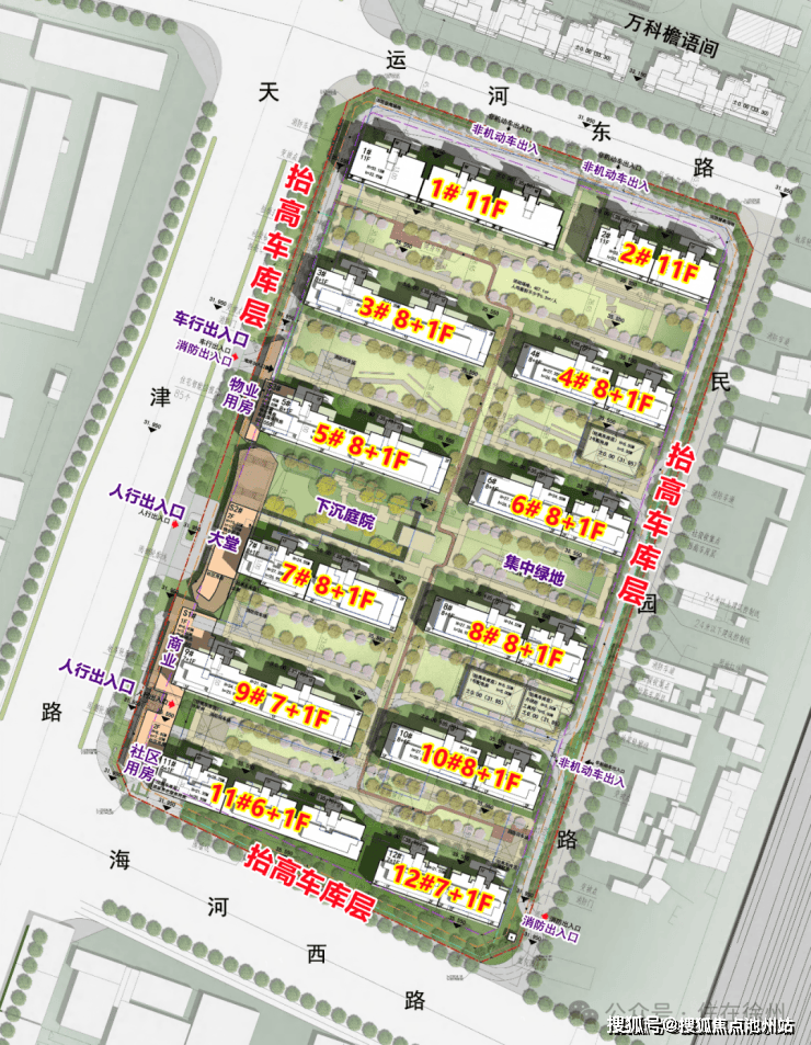 值得注意的是,规划图上标注:抬高车库层!抬板范围几乎为整个地块,也就是说,整个小区都架空起来!