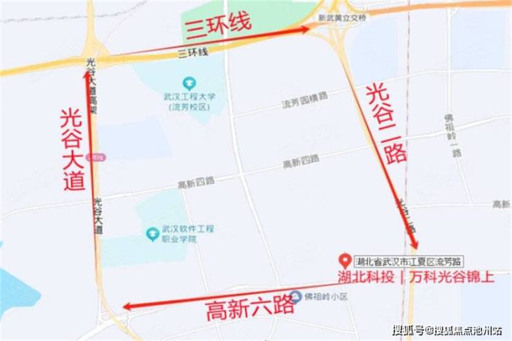 项目位于武汉东湖高新区,流芳路与高新六路的交汇处,属光谷南金融港板块。