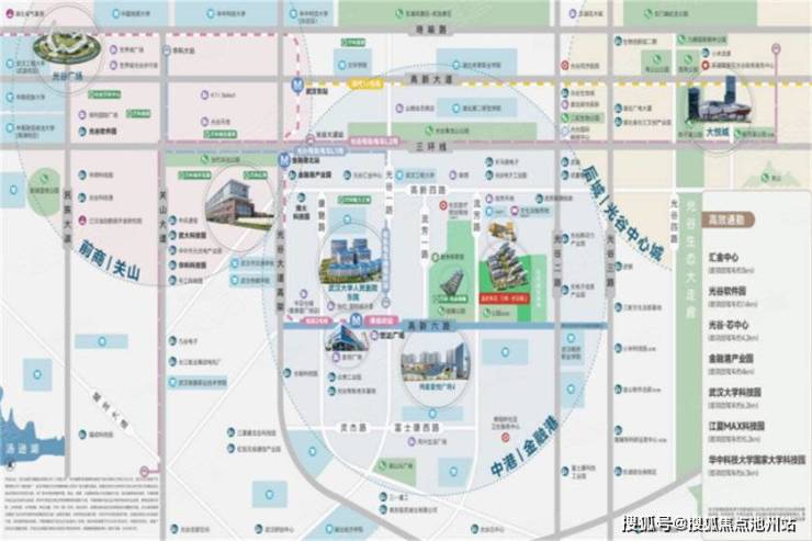 自驾方面,项目南侧是高新六路,东侧是光谷二路,能够快速抵达三环线,前往光谷、武昌、汉口等地。