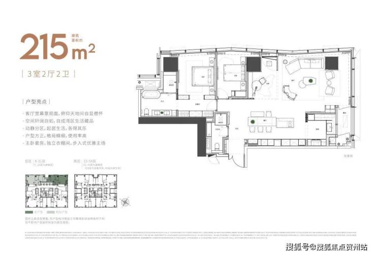 楼层高:59层(低区8-31层,高区33-58层避难层20/32层)
