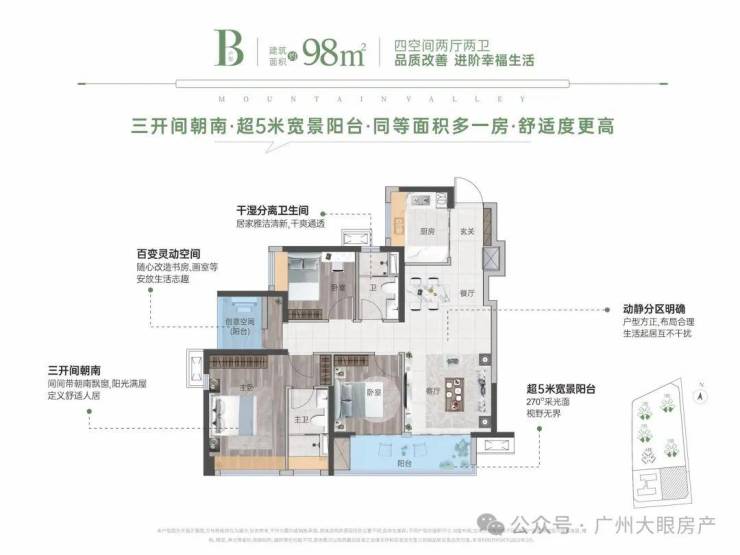 98㎡ 4房2厅2卫,超5米宽阳台