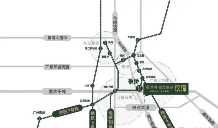 三期组团位于二期东侧,步行约700米即可到达7号线板桥地铁站。乘坐地铁,2站直达万博核心区,5站到琶洲,换乘便捷。