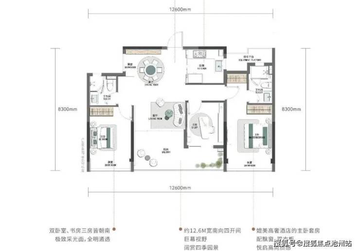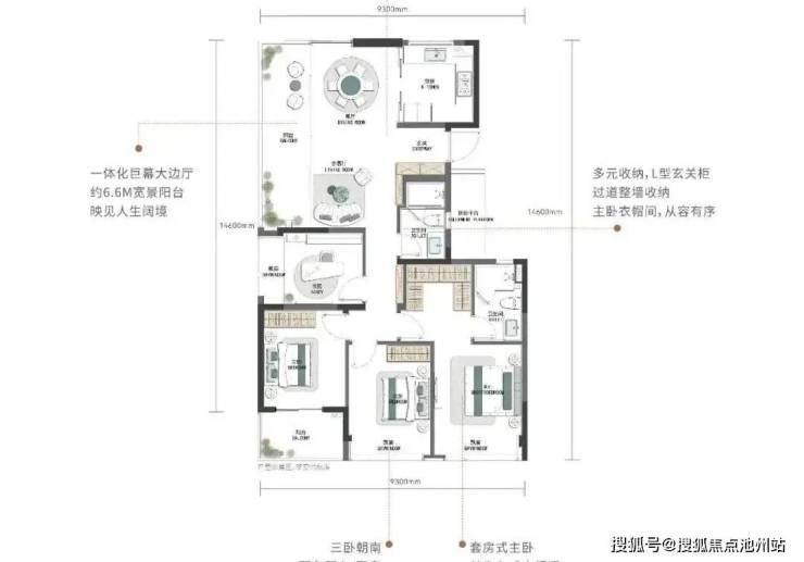 揽景小高层建筑面积约105-130㎡,为最大化景观面,突破性设计建筑面积约105㎡南向四开间。