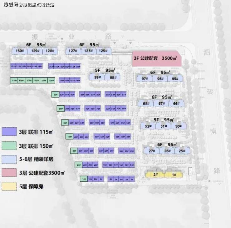 产品类型洋房总户数230套总占地面积约34042.3㎡总建筑面积约37446.53 ㎡容积率1.1绿地率约35%物业类型70年产权住宅梯户比一梯两户层高6层交付标准部分精装、部分毛坯得房率79%开发商上海中建大椿房地产开发有限公司层高2.95米物业费4.85元/平/月物业公司绿城物业拿地时间2022年9月交房时间2025年4月在售套数182套洋房在售房源96㎡洋房 三房两厅两卫(精装、部分毛坯)81㎡ 2房2厅2卫(3套1楼毛坯)楼栋分布图