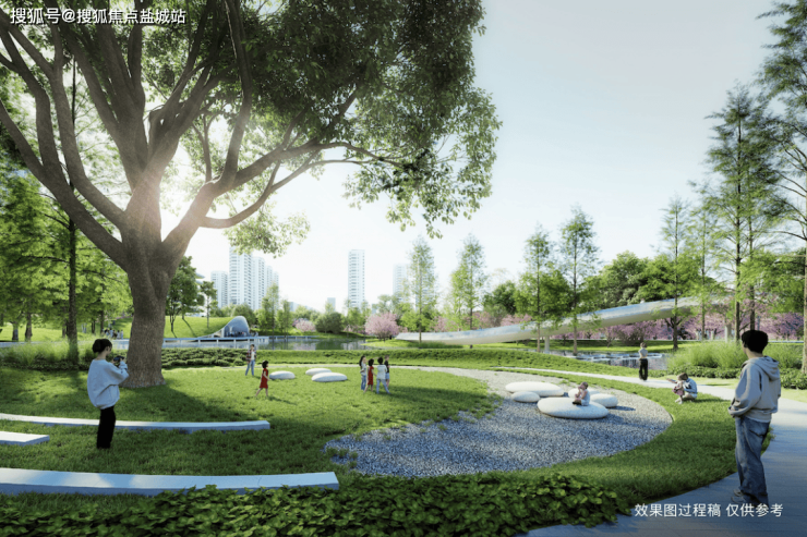 约24公顷四期“中央绿谷”获批复,设计环绕水系、亲水平台、多组团阳光草坪等自然空间。