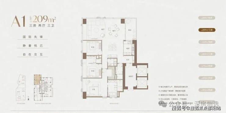 3️⃣户型面积209平以上都有保姆房+保姆梯。