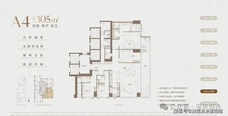 ②高区42F起(150-200米)是约370-375-403㎡4+1房五卫+家庭厅+家政套间;