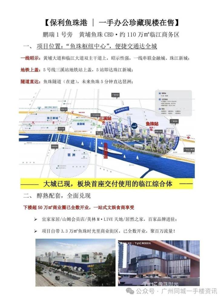 信息仅供参考:本资料所载一切文字、图片及相关信息,仅作为意向购房参考之用,不构成任何要约、承诺或购房建议,请务必以 保利鱼珠港项目实际情况及开发商官方发布的正式文件为准。