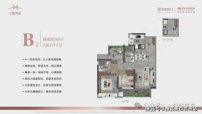 79㎡2+1房:3开间朝南,主卧带飘窗,N+1空间可改造为书房或儿童房,适合年轻家庭。