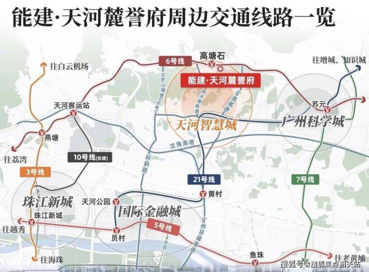项目距地铁6号线高塘石站仅约700米,为天河东板块目前距离地铁最近的新盘之一。乘坐地铁30分钟内可直达珠江新城、国际金融城、琶洲三大城市核心商务区。自驾方面,北临广汕二路快速干道,500米接入广连高速,快速连接广佛肇及环城高速,通勤效率高,适合在天河东部或三大CBD工作的上班族。