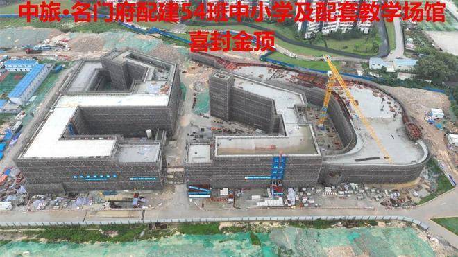 社区内自带18班幼儿园,54班九年一贯制公立中小学,小学建筑于2022年底封顶,中学主体将于近期封顶。