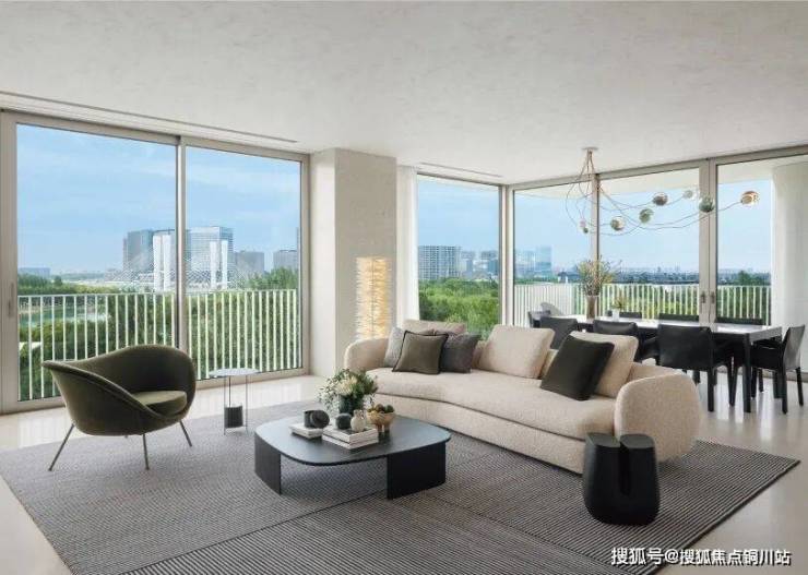 因此,在他的设计下,十四根结构柱有序排列,撑起整座建筑的骨架,造出郑州前所未有的大平层空间,同时将视觉主导权交还给自然。立柱搭配全玻璃外立面,打造出轻盈通透的极简美学。室内几乎无承重墙的“无界”设计,打破了传统住宅的封闭感,让空间不再是固定的容器,而是可随居者意志自由生长的画布。