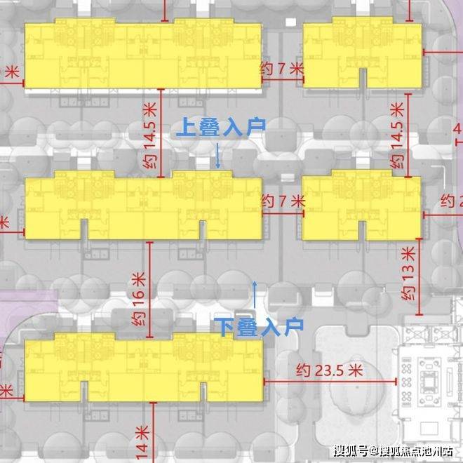 ▲项目(局部)叠墅部分楼间距示意,项目总平图过程稿,以最新设计和最终交付为准