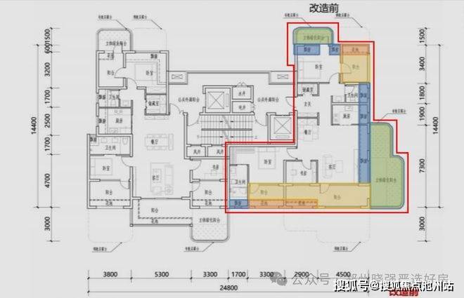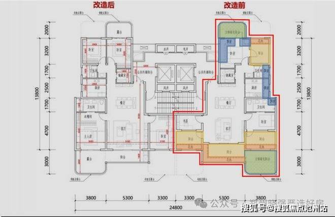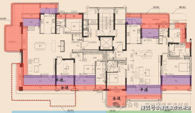 高层中间户是三开间朝南+四叶草的户型,客厅开间5米3,得房率107%,奇偶错层小露台,同时兼顾实用与隐私