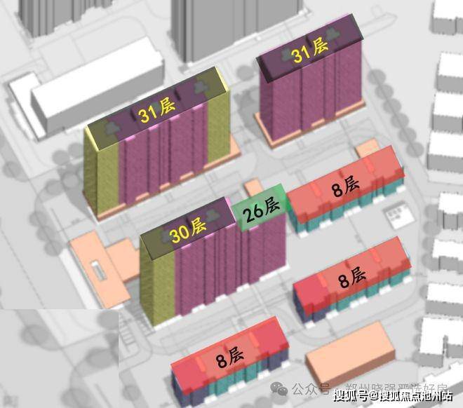 社区采用3排2列对称布局,北侧两栋31层瞰景高层,中间1栋高层(西单元30层/东单元26层)与1栋洋房、南侧2栋8层稀缺洋房,形成北高南低,西高东低的布局,最大化的保障了采光与通风效果,也增加了所有户型的居住舒适度。