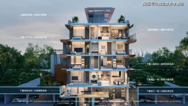 上叠,独立花园入户+L型露台+顶层花园层+负一层收纳层,超越上海10年+的设计。
