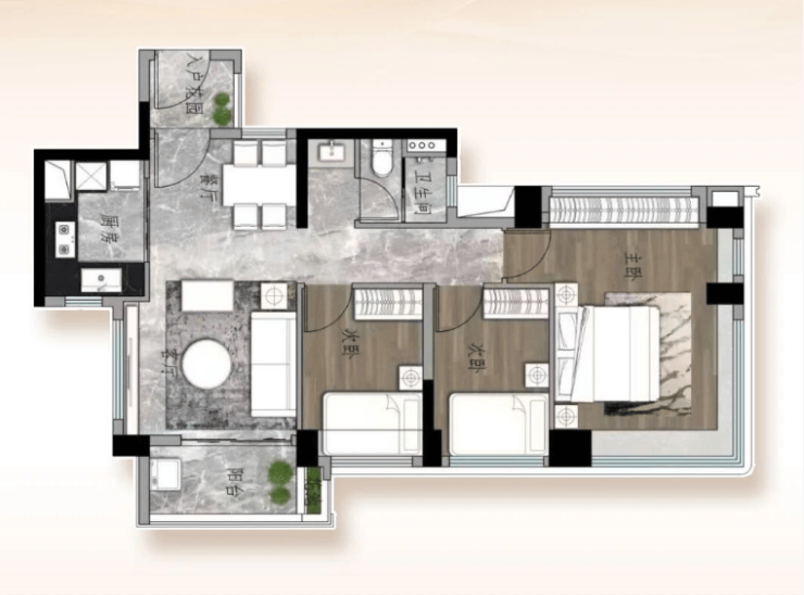 实际使用面积媲美市面更大户型,南向阳台搭配双卫配置,采光通风表现优异,日常使用灵活便捷。