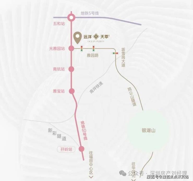 地铁无缝接驳:楼下即为地铁10号线光雅园站B出口,实现“地铁口”出行,1站可达五和枢纽站,可换乘5号线、深大城际等线路,3站直达福田CBD,6站到岗厦北交通枢纽。