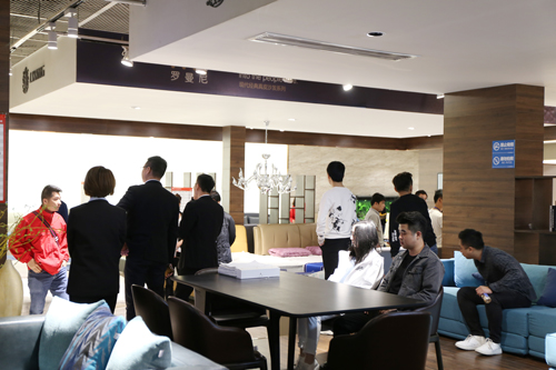 此次工厂喜粤购活动推出的系列产品深受买家的喜爱,来到工厂展厅,他们或坐或躺,或触摸皮质或观看内架,认真仔细的程度不亚于实验室的研究员。