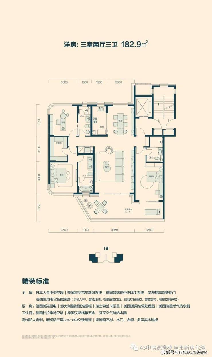 同时项目以全球顶级品牌奢装交付,如德国美诺厨电、意大利施耐德洛橱柜、德国杜拉维特卫浴、德国汉斯格雅五金、德国曼瑞德中央除尘系统、美国霍尼韦尔新风系统等。
