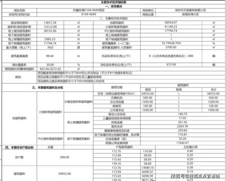 项目用地面积13657.28㎡,容积率仅2.8,建筑面积38155㎡,含住宅34555㎡,其他面积用于物业用房、托育机构和公交站,总户数290户,车位380个。共2栋30层高住宅组成