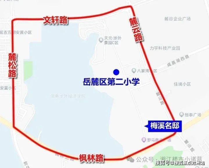 而梅溪名邸则刚好位于岳麓区第二小学的学区范围内,如图所示: