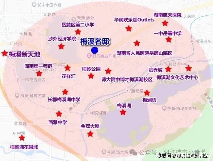 ✔医疗:省人民医院岳麓山院区、航天医院也都在梅溪名邸直线距离约1.5公里范围内。