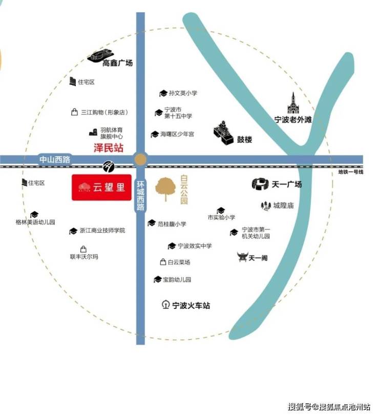 云望里位于海曙区白云街道白云公园西侧,距地铁1号线泽民站仅约300m(规划8号线换乘站),宁波主城核芯区地铁沿线稀缺地段!