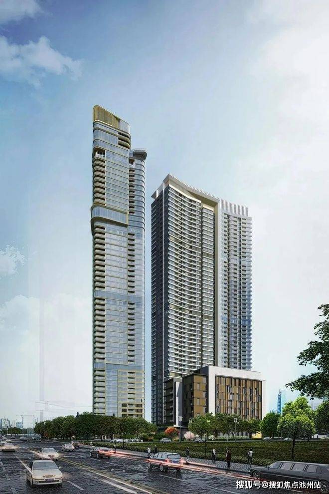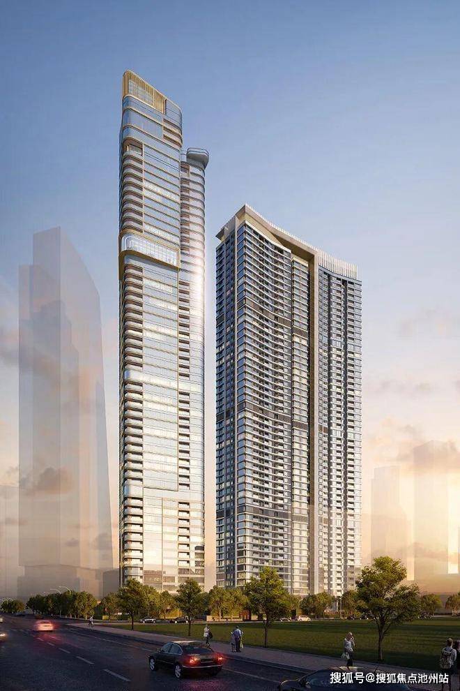项目由1栋188米,1栋211米超高层塔楼组成,总建筑面积约10万㎡,提供573个居住单元及约1000个停车位,并配置国际化尊贵会所。