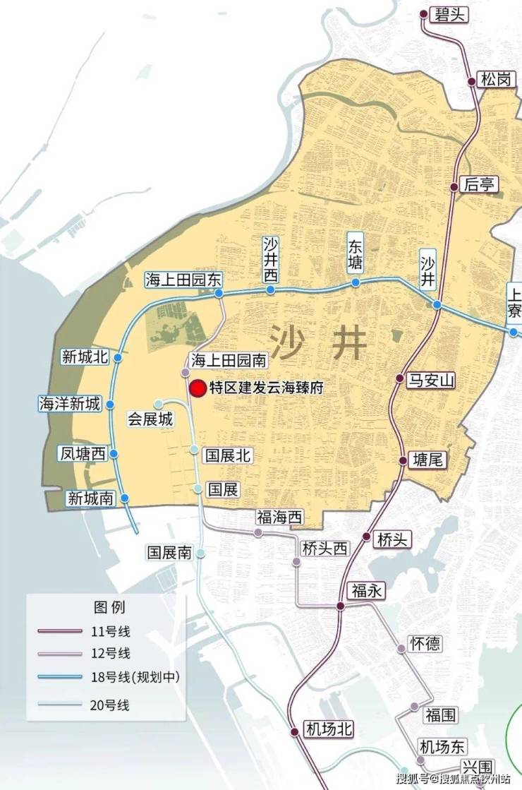 交通配套:云海臻府地块位于宝安区沙井街道展景路一侧,邻近建设中的 12 号线海上田园南站。与海上田园南站直线距离约250米(根据百度地图测量,仅供参考)。未来将可以通过12号线方便通达宝安西乡、南山传统中心区、蛇口自贸区等区域。