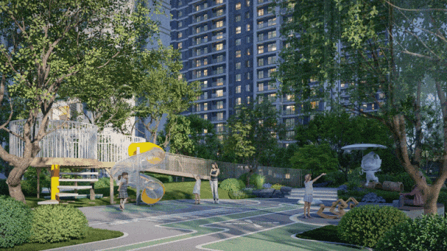 关于人与景观之间的关系,保利锦上印有着独到的理解,通过景观节点设计排布,让运动、休闲等不同场景的生活都能找到舒适的空间体验。