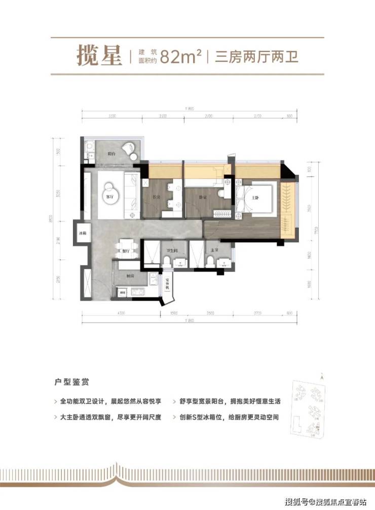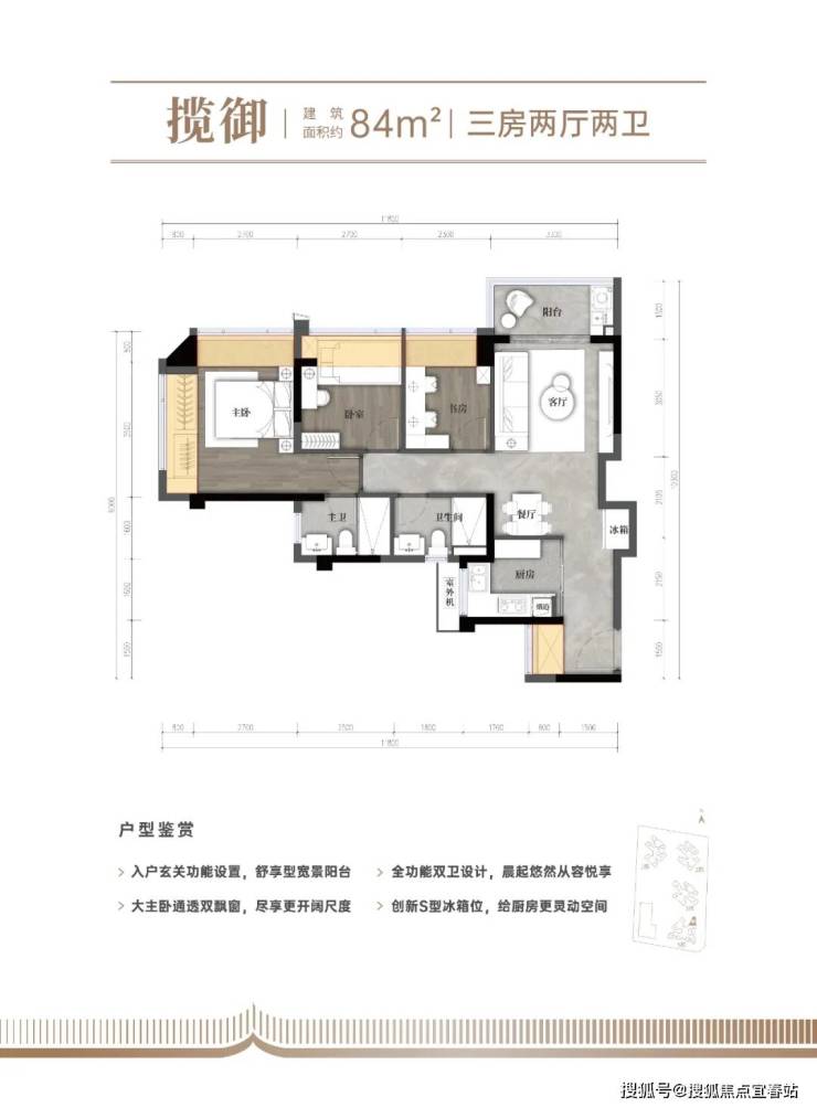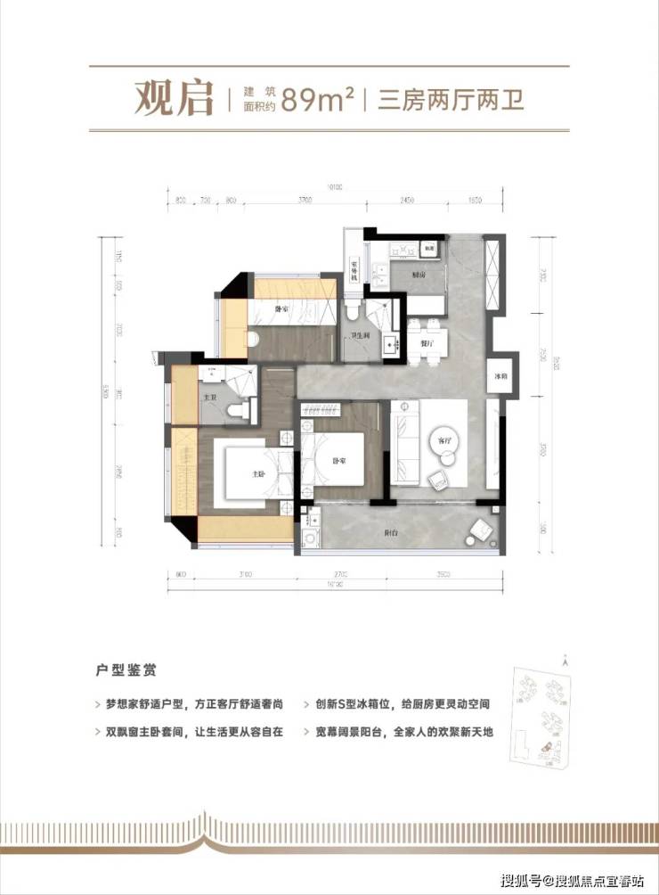 建面约80-110㎡ 按新规设计的3-4房产品,有着超高得房率,多面宽,大阳台等户型优势;