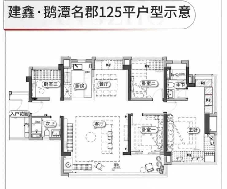 125㎡四房:8.3米的超级阳台,部分楼层能望江。适合想一步到位的改善家庭。